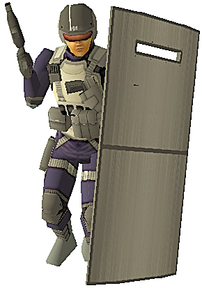 Unlike the other Special Tactical Force (S.T.F.) operatives, McGarren does not wear the combat helmet and blue visor, revealing his short black hair and gray eyes.