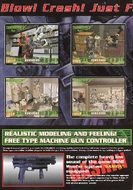 Players score points by landing continuous hits on enemy soldiers and equipment. There is also time bonus points for remaining time after a zone is completed.
